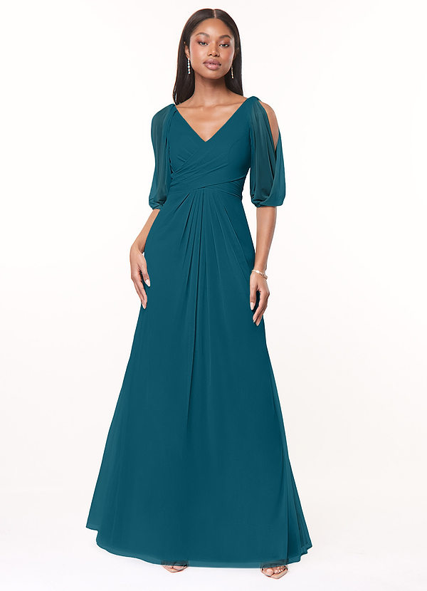 Azazie Noelia A-Line Pleated Mesh Dress