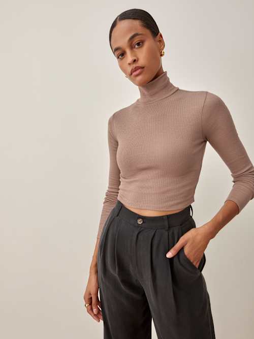 Reformation Davy Cropped Ribbed Turtleneck Tee