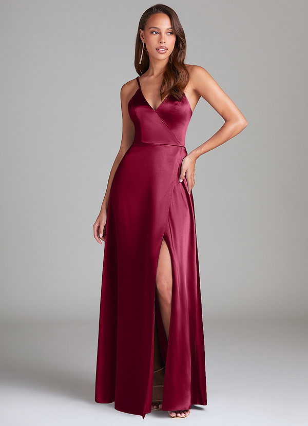 Azazie Maksim A-Line Metallic Satin Dress