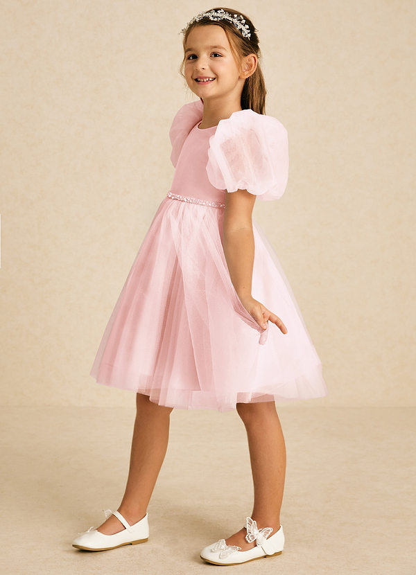 Azazie Blondie A-Line with Sleeves Tulle Dress