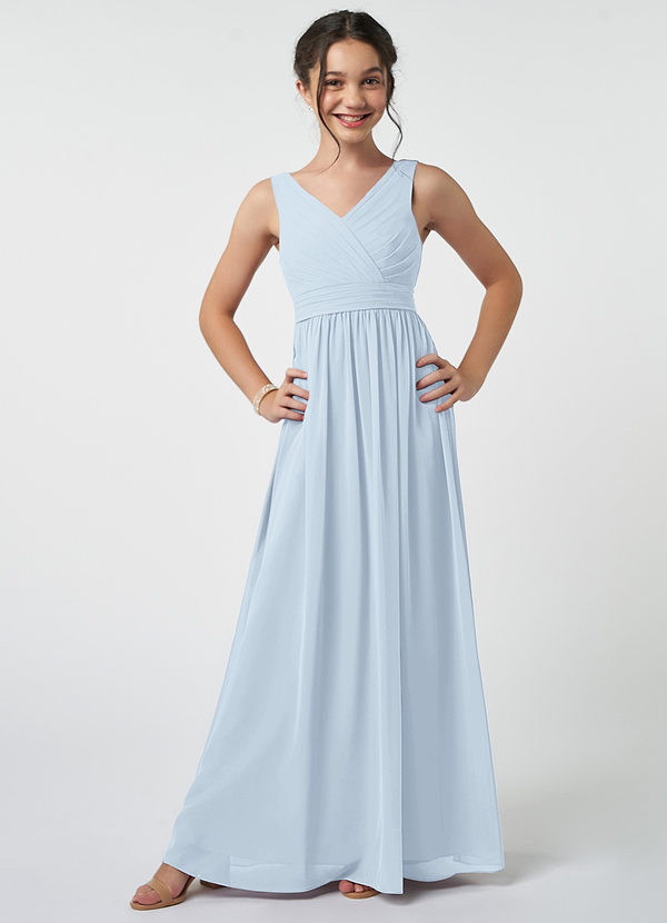 Azazie Kora Junior A-Line Pleated Chiffon Dress
