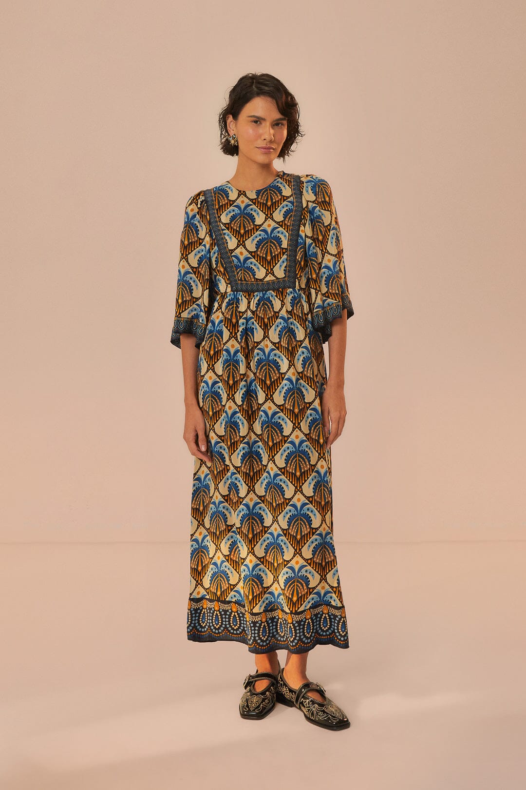 Farm Rio beige cocopalm maxi dress