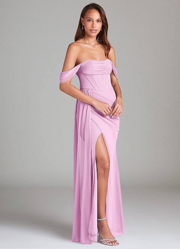 Azazie Amyra Sheath Off the Shoulder Mesh Convertible Dress