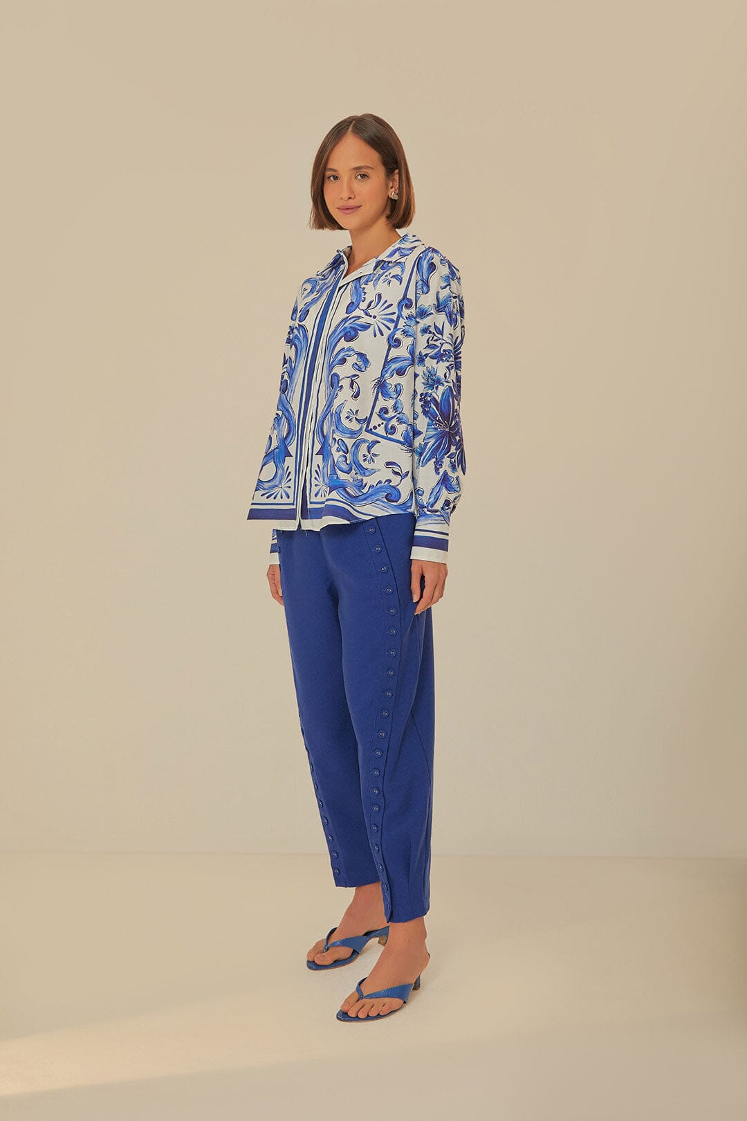 Farm Rio navy blue high waisted pants
