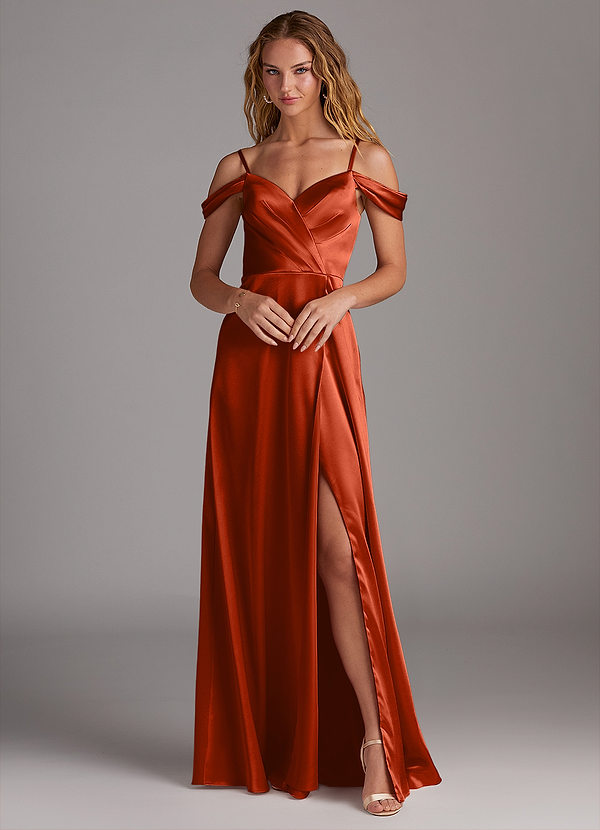 Azazie Ocean A-Line Off the Shoulder Metallic Satin Dress